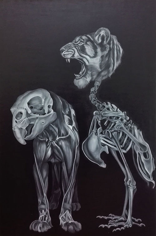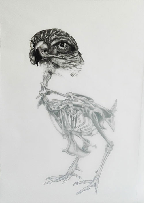 Anatomical studies, works which concentrate on the form and structure of the internal parts like bones and organs from humans and animals, their anatomy. Looking for similarities between the 'building plan' of organisms.