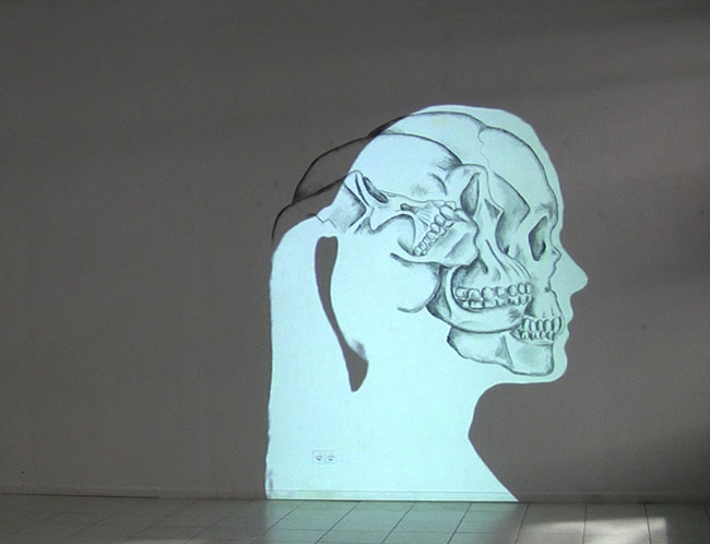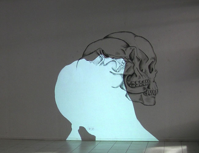 "Involution II" Video projection with beamer on mural Video, HD, loop 0'24" Charcoal drawing, 150 x 200 2012