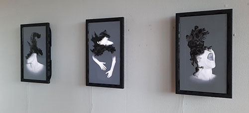 Study of the psychological interpretation of inkblots from the serie Lost identity. Video, HD, loop 0'18" Pvc foil, india ink Video-screen, glass, frame, 77 x 46 2023