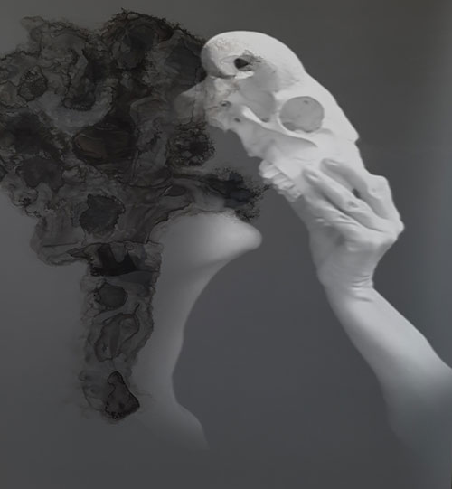 Study of the psychological interpretation of inkblots from the serie Lost identity. Video, HD, loop 0'21" Pvc foil, india ink Video-screen, glass, frame, 150 x 84 2024