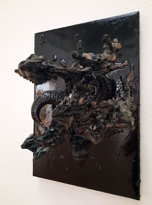 In Mindscapes, Sanne Maes explores the inner landscapes of the human mind. The series consists of sculptures and reliefs in which recognizable forms — faces, ears, skulls — merge with organic, dripping structures. These fluid shapes seem to emerge from the material itself, as if they were elusive extensions of memory, perception, or inner states.