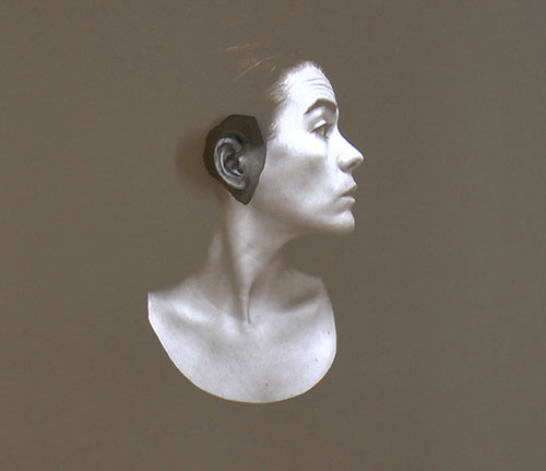 "Part Body II" Study of the human ear Video projection with beamer on concrete ear and wall Video, HD, loop 0'28" Concrete, 50 x 40 x 6 2015