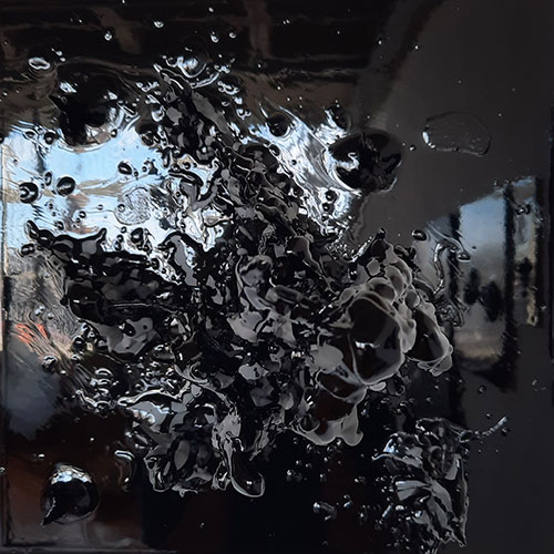 Fossil Fuels from the serie Oil spills. Reliëf acrylic medium, cast on wood 35 x 35 2023
