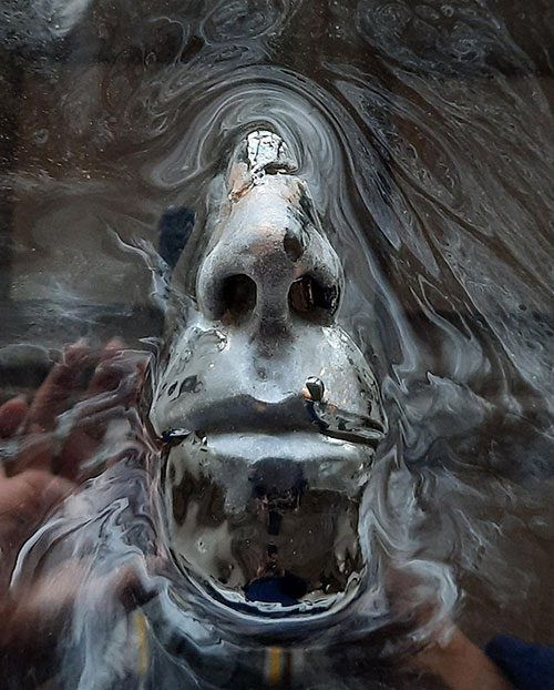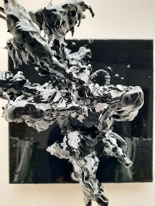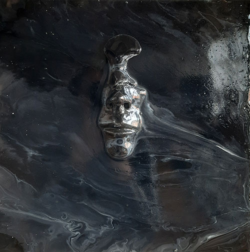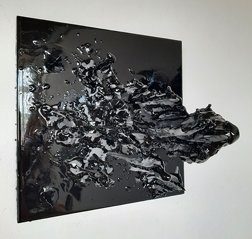 This series of works consists of exciting reliefs and sculptures. Dripping works with recognizable shapes and images here and there. A murky black layer of oil seems to cover almost everything. Organic materials try to get out from under the layer. Every now and then there is a recognition of our own world.